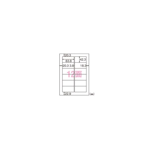 - 【返品種別A】□「返品種別」について詳しくはこちら□◆各種プリンタ(レーザ・インクジェット・コピー機)でマルチに印刷可能。カラーレーザプリンタ、カラーコピー機にも対応しています。◆連続給紙が可能なので、大量に印刷したい場合にも便利です。◆台紙から剥がしやすいように、裏面の剥離紙には、あらかじめスリット(切れ込み)が2本入っています。 ◆剥離紙(台紙)は樹脂ラミネート加工をしていませんので、そのまま雑誌古紙としてリサイクルできます。■ 仕 様 ■入数:100シートサイズ:210×297mm(A4) 紙厚:0.15mm 坪量:144g/m2程度 ラベルサイズ:83.8×42.3 面付け:12(2×6)[ELM007]OAサプライ/OA機器>ラベル・シール>宛名・分類用ラベル>プリンタ兼用>11〜20面