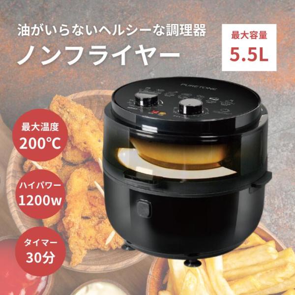 電気フライヤー ノンフライヤー ノンフライ油を使わず揚げ物 ヘルシー 最大温度200℃ 最大容量5.5L 中が見える お手入れカンタン HTC-353