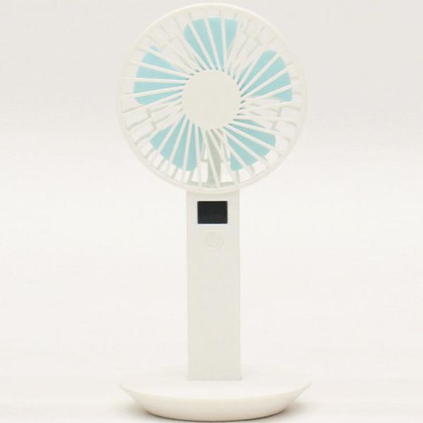 - 取寄せ商品。(お届けまで1週間ほどお時間がかかります。)★取り寄せ商品★【特長】■USB充電式■ハンディ&スタンドの2WAY■デジタル表示■電源オンで風量表示■待機で電池残量表示【仕様】●本体サイズ:約幅94×高さ202×奥行94mm●本体重量:約0.16kg(160g)●充電時間:約4時間●連続使用時間:約2〜8時間●電源:内蔵リチウム電池2000mAh●消費電力:3.5W●電圧/電流:DC5V/1A●保証期間:3ヶ月【使用上の注意】・水に濡らしたり湿気の多い場所、バスルームで使用しないでください。故障の原因となります。・故障、事故等の原因となりますので、本体を分解しないでください。電池を取り外さないでください。・毛布や布団などの燃える物の上で充電しないでください。・7歳以下のお子様は1人で使用しないでください。・動作停止、事故の原因になりますので、本体に強い衝撃を与えないでください。・本体の処分につきましてはリチウム電池を内蔵しておりますので、各地方自治体の廃棄処分に従ってください。・ファンの内部に液体や金属などの異物を入れないでください。・直射日光の当たる場所、高温多湿の場所、または可燃物の近くに保管しないでください。・製品を長期間使用しない場合は、USBプラグを電源から遠ざけてください。