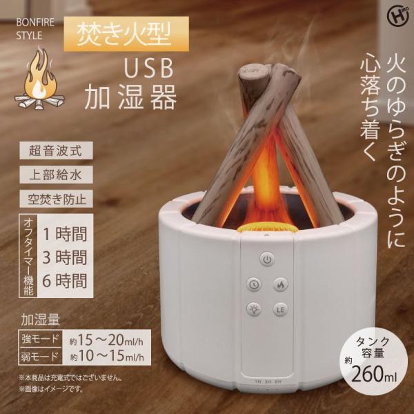 HIRO ヒロコーポレーション HED-2801 焚き火型USB加湿器 上部給水 超音波式 リモコン付き