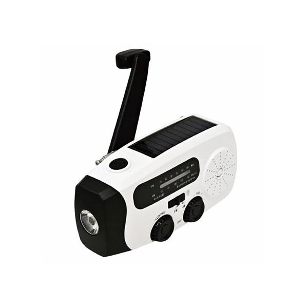 - 商品名 ダイナモソーラーラジオライト サイズ:約131×53×66mm 重 量:約228g 生産地:中国 素 材:ABS、PC、PVC 商品PR: 災害発生時停電時などで大活躍 災害時に1台3役! 暗闇もLEDライトの光で一安心 手回しラジオ、ソーラー充電、LEDライト 防災セットの必需品 【仕様】 ラジオ周波数帯:AM522-1620kHz/FM76-108MHz 消費電力:6W LEDライト:1W/110lm 6500K 内蔵電池:リチウムイオン電池 2000mAh(3.7V) 入力電源:DC5V 1A 出力電源:DC5V 0.85A 付属品:USBケーブル、取扱説明書、ストラップ 【注意事項】 ●充電中、発熱などの異常に気が付いた時は、直ちに充電ケーブルを 抜く。またはダイナモの回転をやめて充電を中止する。 ●充電ケーブルが踏まれたり、引掛けられたり、無理な力を受けて 損傷することがないような場所で充電する。 ●充電ケーブルなど破損、取付状態、その他動作に影響を及ぼす すべての部位に異常がないか確認する。 ●使用中、本製品の調子が悪かったり、異常を感じたときは、直ちに スイッチを切って使用を中止する。 ●使用しないときは、子供の手の届かない乾燥した場所に保管する。 ●本製品を本来の用途以外に使用しない。 ●本製品が濡れているときや、湿気の多い場所では使用しない。 ●本体、充電ケーブルを濡れた手で触れない。 ●可燃性のガス、液体、粉塵のある所では使用、充電しない。 ●強い衝撃や振動を加えたり、落としたりしない。 ●自分で正しく操作できない人には使用させない。 ●本体内部のバッテリーから漏れ出た液体に不用意に触れない。 ●本体を水に浸けない。 ●周囲温度が10℃未満、または周囲温度が40℃以上の環境では充電しない。 ●充電中に本体や充電ケーブルを布などで覆わない。 ●本製品に破損や亀裂、変形がある場合は使用しない。 ●使用時間が極端に短くなった場合は使用しない。