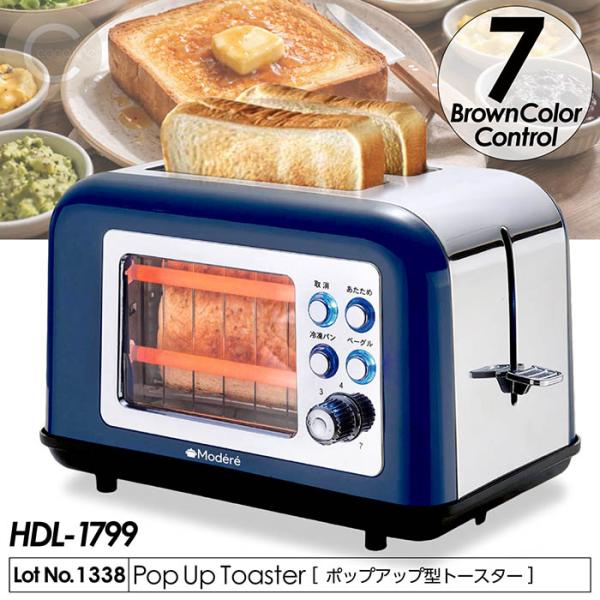 ポップアップトースター レトロ調窓付き 5〜8枚切り対応 焼き色7段階調整 自動電源オフ ベーグルモード 冷凍食パン対応 パンくずトレイ ACコード収納 HRS-2062