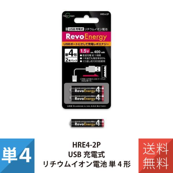 ヒーローグリーン USB充電式 リチウムイオン電池 単4形 HRE4-2P ( 2本パック )