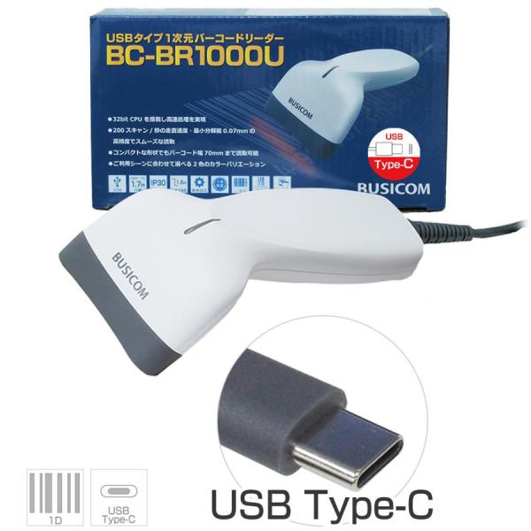 省電力バーコードリーダー BC-BR1000U 1次元 1D (Type-Cケーブルモデル・ホワイト) バーコードスキャナ 【1年保証】【日本語マニュアルあり】BUSICOM