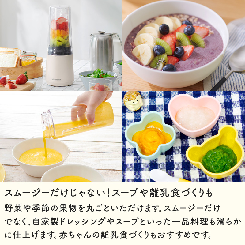 野菜や旬のフルーツを入れてボタンを押すだけで、ビタミン満点のヘルシースムージーがあっという間に完成します。