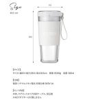- 新品 ※この商品は佐川急便より宅配便にて発送致します。 【外形寸法約】W95×D85×H185mm 【質量】約450g 【ボトル容量】300ml 【主材料】本体/ABS ボトル/トライタン 【電源】リチウムイオン電池 【充電仕様】 DC5V・1A 【付属品】マグネットタイプUSBケーブル×1個 (ACアダプターは付属していません) 【ご使用の目安】1回のフル充電(約2時間)で40秒運転x約10回ご使用いただけます。 【備考】 ・本製品は水など液体と一緒にジュースやピューレ状にするような、かくはん作業に適していますが、フードプロセッサー、フードカッターの機能はありません。 ・角氷は粉砕できますが、使用する場合は冷凍庫で作った角氷で約2cm以下のものを使用し、30gまでとしてください。また、必ず水などの液体も入れてかくはんしてください。 ■以下に記載する食材には使用できません。 ・ロックアイス ・完全に冷凍された果物、野菜等:冷凍された食材は、半解凍してからご使用ください。 ・肉、魚類:挽肉作りなどにはご使用できません。 ・泡立てや生地作り:卵白の泡立て、生クリームのホイップ、パン、ケーキ、パイ生地作りなどには使用できません。 ・大きい食材:2cm以下にしてください。 ・固い食材:漢方薬類、かつお節の塊は使用できません。固い野菜などは煮るなどしてやわらかくしてからお使いください。 ・粘り気の強いもの:パン、うどん等の生地作りには使用できません。 ・色素を含むもの:ウコン、クミン、クローブ等のスパイス(※色がついてとれなくなる恐れがあります。) ・その他:野菜のみじん切り、すりおろし、乾燥させた果物、ペットフードには使用できません。
