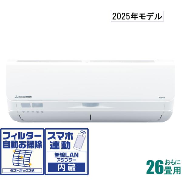 三菱重工 (2025年モデル)(標準工事セットエアコン)ビーバーエアコン おもに26畳用 (冷房:22〜33畳/ 暖房:21〜26畳) SRK8025S2-W 返品種別A