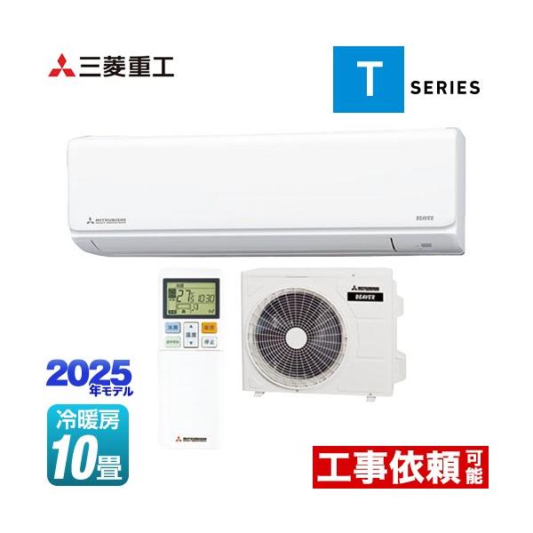 ビーバーエアコン Tシリーズ ルームエアコン 冷房/暖房10畳程度 三菱重工 SRK2825T-W 室内機:高さ250mmコンパクトタイプ ファインスノー
