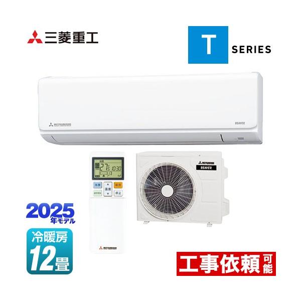 ビーバーエアコン Tシリーズ ルームエアコン 冷房/暖房12畳程度 三菱重工 SRK3625T-W 室内機:高さ250mmコンパクトタイプ ファインスノー