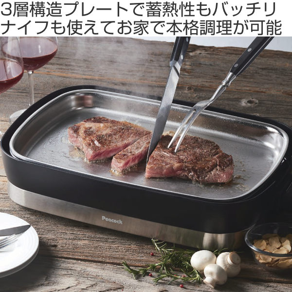 ●厚さ4mmの重厚プレートで本格調理が出来るステンレスホットプレートです。