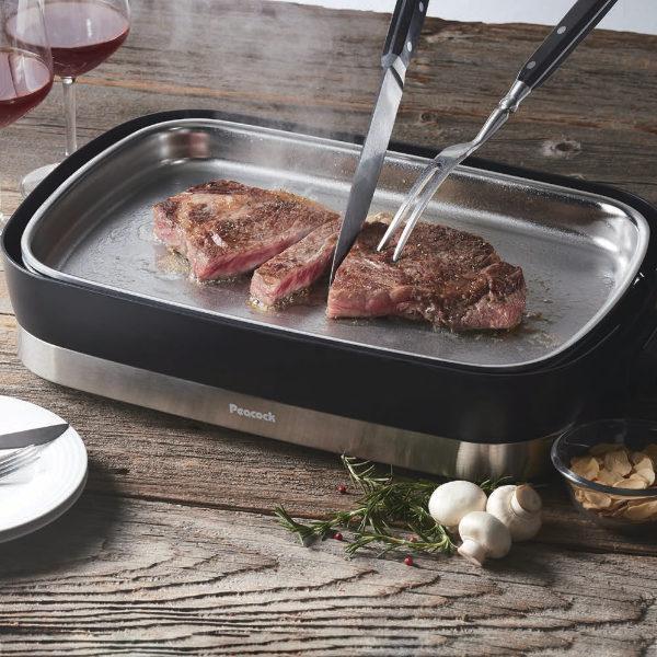 - 厚さ4mmの重厚プレートで本格調理が出来るステンレスホットプレートです。蓄熱性の高い3層クラ…(続きは下に) 【商品詳細】サイズ/約幅45.4×奥行29.1×高さ13cm プレートサイズ:約幅36.5cm×奥行24cm×高さ3cm 重量/約4.1kg 内容量/本体、ターナー 材質/蓋:印刷鋼板・塗装 蓋つまみ:フェノール樹脂 本体:ポリプロピレン 本体飾り版:ステンレス 遮熱版:ガルバリウム鋼板 プレート:3層クラッド鋼 生産国/中国製 消費電力/1000W コードの長さ/1.8(m) 注意事項/※金属製のナイフやフォーク、ヘラなどの鋭利なものは使用時は力を入れすぎると傷の原因となりますのでご注意ください。性能・衛生上は問題ございません。 ※定格15A以上のコンセントを単独で使用してください。 ※交流100V以外では使用しないでください。 備考/定格電圧:AC100V(50/60Hz) 《送料無料 電磁調理器 調理家電 キッチン家電 フタつき 蓋 家電 調理 料理 簡単操作 料理家電 生活家電 工事不要 シンプル 黒 新生活 パーティー ホームパーティ 引っ越し祝い 火を使わない 安心 安全 手軽 便利 簡単 ギフト 贈り物 プレゼント お祝い 料理教室 ステーキ 肉 洗える ワイド LH5249》
