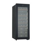 - こちらの商品は家電リサイクル法対象商品につき、下取り・リサイクル回収をお申し込みの際は指定のリサイクル料・収集運搬料を頂戴いたします。商品お届け時に当社配送担当が回収いたしますため現金でお支払い下さい。フォルスタージャパン FJE-76GS(BK) 薄型ワインセラー エッセンシャル 29本収納 スライドラック オートクローズ扉 1温度タイプ ブラック発売日:2024年7月1日●細部まで品質とデザインにこだわり抜いたフォルスターの新型ワインセラー「Essential 」シリーズフォルスタージャパンの「Essential」シリーズは、細部まで品質とデザインにこだわり抜いたワインセラーです。自社で基幹部品を選定し、独自の試験方法を通じて品質目標を達成するために、一から設計を行っています。ミニマルなデザインで空間に調和し、省エネ性の高いインバーターコンプレッサーの搭載に加え、使い勝手の良い広めの棚間隔とスライドラックを備えています。ワインを愛する皆様のために作られた、使いやすくて美しいワインセラーです。●丸みを帯びた角部分が特徴的なラウンドデザイン扉面の角は丸みを帯びたラウンドデザインとなっています。これによりワインセラーにありがちな無骨な印象が和らぐと同時に、ミニマルで洗練された外観を実現しました。●部屋の家具とのバランスを考慮した薄型設計奥行を482mm(※転倒防止金具は除く)に抑えました。この設計により、ワインセラーを部屋に設置した際に前面にせり出してくる部分が少なく、他の家具とのバランスを崩すことなく部屋全体の調和を保つことができます。●暖かな印象を与える木製の棚飾りを採用デザインとしても人気があり、見る人に暖かな印象を与える木製棚飾りを採用しました。FJE-76GS(BK)の棚には濃い色味の木材を、FJE-76GS(WH)とFJE-76GS(BU)の棚には薄い色味の木材を採用することで、デザインの統一感を演出しました。●使い勝手の良い広めの棚間隔ワインセラーの使い勝手を大きく左右する棚間隔については、太めのワインボトルもストレスなく出し入れできるよう、FJE-76GSでは100mmの棚間隔を確保しました。(※間口部分は約80mm程度)●力を入れずにスムーズに出し入れができる金属レール スライドラック金属レール式のスライドラックを採用することで、力を入れずにスムーズにラックを出し入れすることができるだけでなく、ワインボトルのラベルをより見やすくしました。広めの棚間隔との組み合わせによって、ワインの出し入れがより簡単になり、使い勝手が大幅に向上しました。●省エネ性能をプラスした環境配慮のインバーターセラーインバーターコンプレッサーは周囲の状況に応じて、時にはパワフルに、時にはやさしく効率的に冷却に必要な回転数を制御するため、エネルギー費の高騰が叫ばれている現在において、省エネ性と静音に効果を発揮します。●過酷な夏場でも安心してワインを保管できる酷暑対応過酷な夏場の周囲温度にも対応した使用環境38℃での安全性及び耐久性テストをクリアしています。●寒い冬場でも庫内温度の低下を抑制する加温ヒーター外気温が低い冬場は庫内の温度が下がりすぎることも。FJE-76GSは加温ヒーター付きなので、過度な庫内温度の低下を抑制し、大切なワインを低温劣化から守ります。●ボルドータイプとブルゴーニュタイプの収納本数ボルドータイプのボトルであれば、ラック1枚に4本収納できます。ブルゴーニュ型のワインボトルに関しても、互い違いに収納することでラック1枚に4本収納できます。下段の3段については横置きでラック1枚にボルドーボトル3本、ブルゴーニュ型についても互い違いに入れることで3本収納できます。 【仕様】カラー:ブラック収納本数:29本定格容積:86L外寸(mm):幅400×奥行482(※転倒防止金具は除く)×高さ1010mm ※奥行の実際の設置寸法:転倒防止金具含まない奥行482mm+放熱スペース50mm=532mm放熱スペース:左右20mm 上部100mm、背面50mm消費電力:50Hz 256kWh/年 60Hz 256kWh/年冷却方式:インバーターコンプレッサー式庫内灯:バータイプLED(左右側面2カ所)ガラス扉:3層ガラス(Low-E)扉開き:右開き扉鍵:なし棚の仕様:木製棚飾り付きワイヤー棚棚引き出し:金属レール方式電源コードの長さ:約1.8m低外気温時の温度制御:加温ヒーター通電式コントロールパネル:タッチ式(庫内側設置)