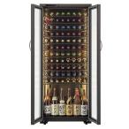 - 【ご注意ください】1、ルート配送のため、 時間帯指定はご注文画面で選択いただいても承れません。※配送日の前日の夕方〜当日朝にお届け時間帯をご連絡致します。2、配送設置商品と関連品以外の商品の同時注文は承ることができません。対象品:大型テレビ・洗濯機・冷蔵庫・電子ピアノ・食洗器・マッサージチェア・エアコンご注文いただけますキャンセルさせていただきますテレビ + レコーダーテレビ + 飲料水洗濯機 + 給水ホース洗濯機 + 飲料水3、配送設置商品はヤマダデンキ配送センターからのお届けです。空き状況によっては、表示納期よりもお届けに時間がかかる場合がございます。4、配送時に金額明記の受領証にサインがございます。5、楽天あとばらいと代金引換えはご利用いただけません。※ご注文画面で選択いただいた場合でも承れません。6、当店では、家電4品目「薄型テレビ」「冷蔵庫」「洗濯機・乾燥機」「エアコン」をリユース事業サービスの一環して良品買取を行っております。ご注文時にリサイクル回収をご希望の場合、旧機種をその場で査定の上、買取りさせていただきます。査定の結果、良品買取が出来ない場合はリサイクル回収(現地直収)となります。※沖縄県、各離島など、地域により買取出来ないエリアがございます。※離島、山間部および一部の遠隔地等はご注文をお受けできません。また、一部エリアにつきましては別途送料が発生する場合がございます。詳細はメールにてご案内いたします。 フォルスタージャパン ST-409FG2(WK) ロングフレッシュ 日本製 120本収納 観音開き 傾斜ラック 新冷媒 25年モデル ウッドブラック発売日:2025年4月4日●ハイスペックを身にまとった、進化し続ける伝統のフラッグシップモデル大切なワインコレクションを安心して保管したい、そんなプロフェッショナルな方や本格的なワインラヴァーの方に贈る、安心と信頼の日本製ワインセラー、それがフォルスタージャパンのフラグシップシリーズ「ロングフレッシュ」です。ワイン保存に徹底的にこだわったメイドインジャパンの高品質なワインセラーは、ソムリエなどのプロフェッショナルから長年に渡り支持されています。●日本の岡山県の工場で、技術訓練を受けた熟練工が一台一台を丁寧に組み立てロングフレッシュシリーズは、岡山県の工場で熟練工が丁寧に製造する少量生産モデルです。大量生産では難しい細やかな品質管理を徹底することで、高い品質を実現しています。そのため、ワインの専門家からも高い評価を受けています。さらに、日本のJET(一般財団法人電気安全環境研究所)の安全基準をクリアしているので、安心してお使いいただけます。●新銅管(DANT)の採用により冷媒ガス漏れ10年保証を実現ST-409FG2では新たに冷媒ガスが流れる配管に「新銅管(DANT)」を採用しました。従来の銅管は長年使用するとアリの巣状に腐食し、薄くなった部分から冷媒が漏れるリスクがありました。新銅管(DANT)は、腐食が均一に広がるため、特定の部分が急激に薄くなるのを防ぎ、冷媒ガス漏れ(※)を抑えます。この技術により、10年間の冷媒ガス漏れ保証を実現しました。(※冷凍サイクルからのガス漏れのことを指します)●環境への取り組みとして、地球にやさしい冷媒ガス「R1234yf」を採用新型ロングフレッシュシリーズ(209/309/409シリーズ)では、環境にやさしく、安全性の高い冷媒ガス「R1234yf」を採用しました。この冷媒は地球温暖化係数(GWP)がわずか1と非常に低く、従来の冷媒に比べて環境への負荷を大幅に削減できます。さらに、従来のノンフロン冷媒「R600a」と比べて燃焼性や爆発性が低いため、より安全に使用できます。また、「R1234yf」は取り扱いが容易なため、万が一の故障時にも修理しやすいのが特長です。長く安心してお使いいただける設計になっています。●冷凍サイクルを最適化により、従来機種(ST-408FG2)よりもさらに省エネに負荷に応じてコンプレッサーの回転数を変化させるインバーターコンプレッサーを採用してるため、冷却に必要な分だけ回転制御するため、効率がよく、比較的エネルギー消費も少ないのが特徴です。さらに冷却に重要なキャピラリチューブの長さと太さを最適化することで、従来機種(ST-408FG2)と比較して、約13%の消費電力の削減を実現しました。●省エネ性に加えて低振動も実現ワイン貯蔵の際にはなるべく振動が少ないことが望まれますが、インバーターコンプレッサーの搭載により、必要な冷却量に応じて回転速度を調整するため、急なON/OFFの切り替えがなく、振動を抑えた静かな運転を実現します。大切なワインを安定した環境で保管するために、低振動でなめらかに動作する設計を採用しています。●棚間隔を調整できる可変式ラックを搭載。最下段には日本酒を立てて保管することも可能庫内のガイドレール上のフックを調整することで棚間隔を細かく変更することができます。最下段のスペースを広めにとり、付属のカゴを外すことで日本酒