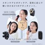 - 本体にアタッチメントを取り換えることで、3つのまったく異なる機能を実現 ◆美容成分の浸透を高める「エレクトロポレーション」 ・ユーザーが使用している化粧品の有効成分を肌の深部(角質層)まで浸透させる 効果が期待できます。 ・ヒーターで温めながらケアできます。 ・赤色LEDライトにより肌環境を整え、ハリ・ツヤのある肌へ導きます。 ◆シワやたるみをケアする「EMSブラシ」 ・持ちやすいブラシ型の本体デザインに、通電部は肌にやさしい柔らかいブラシを採用。 ・筋肉を収縮、弛緩させる2種類の周波数で筋肉にアプローチします。 ・顔の表情筋や側頭筋・前頭筋をブラシを引き上げるように動かして刺激することで 肌にハリを与えてリフトアップケアします。 ・赤色LEDライトにより肌環境を整え、ハリ・ツヤのある肌へ導きます。 ◆頭皮をしっかり揉みあげる「スカルプブラシ」 ・細かい突起のあるシリコンブラシで頭皮をもみほぐし、心地よくケアします。 ・ブラシ型で持ちやすく、後頭部なども楽にケアできます。 ・頭だけでなく、首やふくらはぎなど気になる部分をケアできます。 ◆安心の防水仕様 ・アタッチメントを本体に装着した状態でIPX6となり、お風呂でも使用できます。 (水中にしずめたり、流水を3分以上あて続けないようご注意ください) ◆スマートに収納できる省スペース設計 ・収納BOX付で、スマートに収納できます。 ◆簡単操作 ・ボタン一つで簡単に操作が可能です。