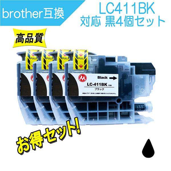 ブラザー LC411BK ブラック 対応 互換インク 黒4個セット ICチップ付 Brother用 プリンターインク