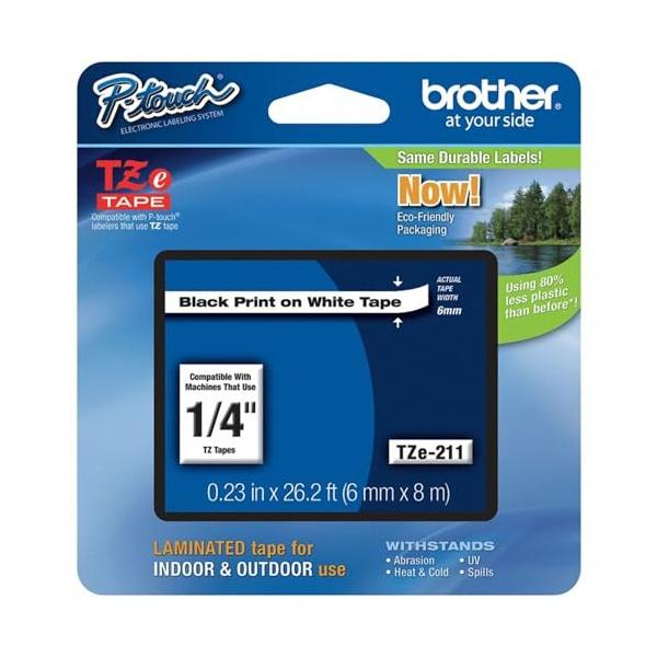 brother純正 ブラザー工業 ピータッチ ラミネートテープ TZe-211 幅6mm (黒文字/白)