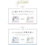 3ステップ糸通し・下糸クイック・かんたん下糸巻き・6枚送り歯・押え固定ピン・全自動ボタン穴かがり・エラーメッセージ・自動返しぬい/止ぬい・縫い目お好み調節・コンパクトだけど広いフトコロ・縫い模様20種類・ドロップフィード・フリーアーム・針停止位置切替 - 楽天での商品説明(モノカリ 楽天市場店)