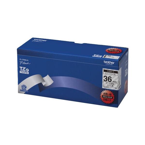 BROTHER ブラザー TZeテープ ピータッチ専用テープ(透明テープ/黒字) 36mm 5個入(TZE-161V)