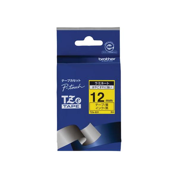 ブラザー ラベルプリンター用ラミネートテープ12mm 黄 黒文字 TZe-631 黄 イエロー ピータッチテープ ブラザー ピータッチ 事務機器