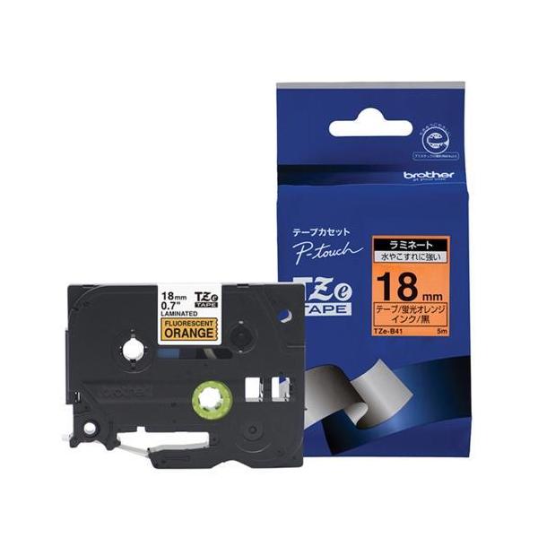 ブラザー(brother) TZe-B41 ピータッチ 蛍光カラーテープ 黒文字/蛍光オレンジ 18mm