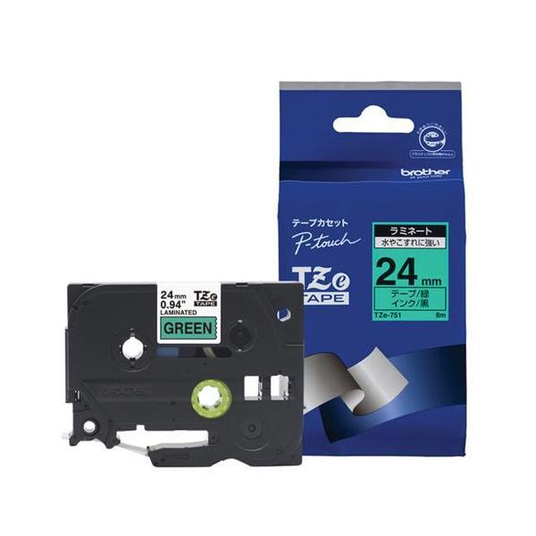 ブラザー(brother) TZe-751 ピータッチ ラミネートテープ 黒文字/緑 24mm
