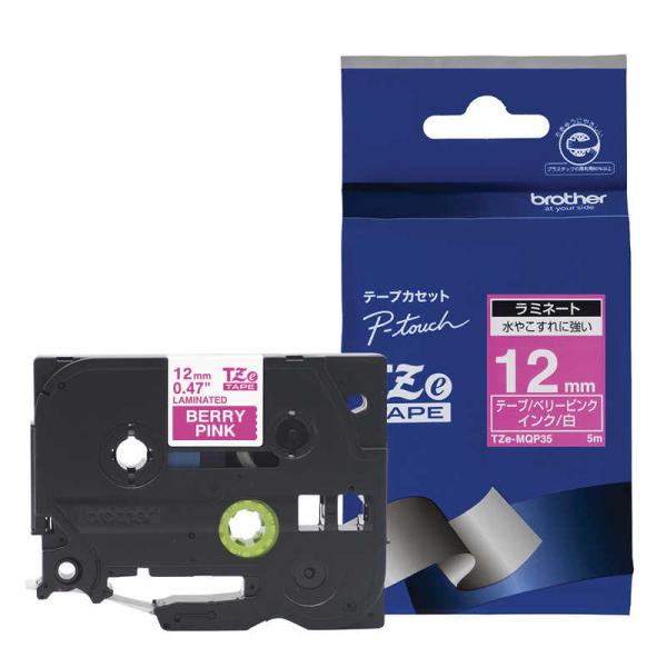 ブラザー brother 【純正】ピータッチ ラミネートテープ 幅12mm (白文字/ベリーピンク/つや消し) TZe-MQP35