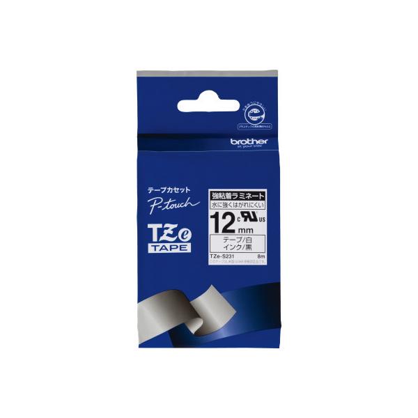 ブラザー ピータッチ用TZeテープカセット 強粘着テープ 白に黒文字12mm幅 TZE-S231 グリーン購入法適応 エコマーク