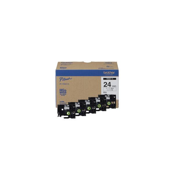 BROTHER ブラザー ブラザー工業 HGeテープ ラミネートテープ(透明/黒字)24mm 長さ8m 5本パック HGe-151V