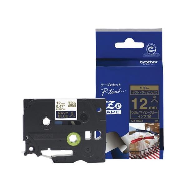 ブラザー(brother) TZe-RN34 ピータッチ リボンテープ 金文字/ネイビーブルー 12mm