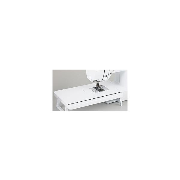 - 付属の補助テーブルを外してワイドテーブルに交換すると大きいものを縫製する時に作業がしやすくなります。