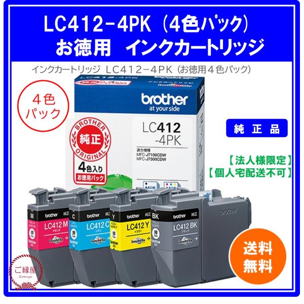 【法人様限定】ブラザー インクカートリッジ 4色パック LC412-4PK 国内純正品 1箱(4個:各色1個)