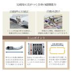 自動押え圧調節、自動糸調子、簡単下糸巻き、下糸クイック、針・押え交換キー、エラーメッセージ、止めぬいスイッチ、余裕のソーイングスペース、自動糸切り、1ステップ自動糸通し、カラー液晶タッチパネル、押え圧調整、LEDライト、自動止めぬい/プログラム糸切り、USBで刺しゅうデータの取込も可能、ワンポイント刺繍71模様、バラエティ刺繍55模様 - 楽天での商品説明(街のミシン屋)