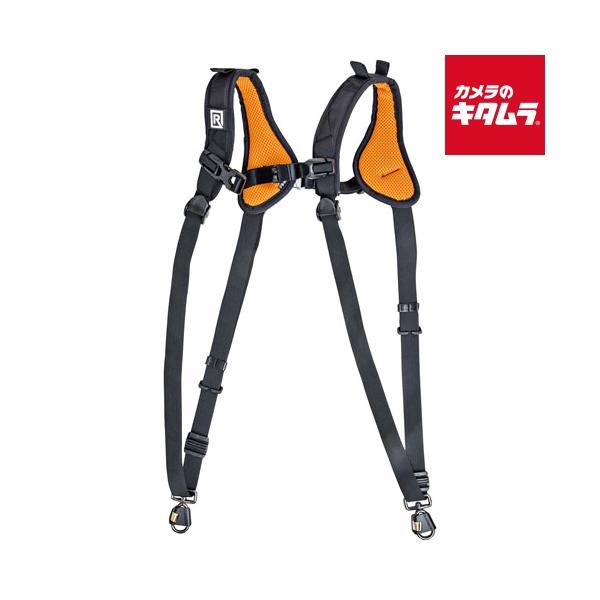 - 2台のカメラやレンズを切り替えられる機能性はそのままに、よりスリムになったプロフェッショナル向けデュアルカメラハーネスが、さらに快適な「eXtra」パッドを装備してリニューアル。【商品仕様】ストラップ最大長:132cmパッド素材:ナイロンモノメッシュ、TPEフォーム、ポリエステルストラップ幅及び材質:幅25mm ナイロンウエビングストラップ重量:約310g付属品:スイベルロック式カラビナ、LockStar II、ファステンR(FR-5)II、セーフティテザーII、メッシュポーチバックパックのように両肩に快適に装着し、2台のカメラやレンズを素早く切り替えられるプロカメラマン向けデュアルカメラハーネスの機能はそのままに、シルエットがよりスリムになったスタイリッシュモデル。 ハーネスの幅をスリム化することで、特に体格に合わせてよりフィットするデザインを求める方や、機材をコンパクトかつスタイリッシュに携行したい方に最適な安定感を提供します。 今回のリニューアルで両肩に装備された「eXtra」パッドにより、スタイリッシュさを犠牲にすることなく、さらなる快適なフィット感での携行を実現しました。 接続ストラップを外せば左右それぞれシングルストラップとしても使える設計です。 BLACKRAPID独自の速写ストラップシステム カメラをカラビナで吊り下げ、取付部のリングがストラップに沿って自在に動くことにより、すばやく撮影体勢に移れるブラックラピッド速写ストラップ。この機構を左右対称なデュアルハーネス構造に組み込んでいます。バックパックのように両肩で均等に重量を分散させるため、重い機材を2台携行する際の首や背中への負担を大幅に軽減します。左右両方のハーネスをひとつにしている2本のベルトを取り外せば、左右それぞれシングルストラップとしてもお使いいただけます。 より快適な多層構造パッド パッドの素材には通気性に優れたナイロンモノメッシュ、柔軟な曲面TPEフォーム、そして柔らかなポリエステルエアメッシュからなる多層構造を採用。荷重を分散させるだけでなく、汗をかきやすい季節や過酷な撮影環境下でも肌を涼しく快適な状態に保ちます。 容易に外れずに確実にフィットする背面仕様 左右のベルトを背面でつなぐストラップは容易に外れにくく、かつ調整がしやすい構造です。カメラを引き上げる際や、激しく動くシーンでも、「eXtra」パッドを装備したハーネス全体がしっかりと体に密着し、安定した撮影を強力にサポートします。 安全性の高いカメラ接続機構 ネジを回して確実にロックするカラビナ「CR-3」と、三脚ネジ穴へ強固に接続するパーツ「FR-5」によるブラックラピッド特許のコネクションシステムが、カメラをストラップにしっかりと確実に保持します。さらに、カラビナの予期せぬ開閉を防ぐとともに、カメラへの接触キズを抑えるロックスターII(カラビナカバー)を標準装備。安全性の高いカメラ接続機構を実現しています。 カメラの動きを抑えるバンパー 肩から提げたとき、左右それぞれの前後2箇所にあるバンパー(ストッパー)の位置を調節することで、カメラの可動域を制限し歩行時にカメラが大きく揺れるのを抑えることができます。バンパーにはスプリング式カムロックを備えているので、瞬時にロックを解放して素早く撮影体制に移ることが可能です。 さらなる安全対策 コネクションシステムによる確実な保持に加え、さらなる安全対策として、ストラップ付け根のリング金具とカメラをつなぐ「セーフティテザーII」を標準装備。予期せぬトラブルで万一カラビナが外れてもカメラの脱落を防ぎます。 持ち運びに便利な付属メッシュポーチ ストラップを使用しない時には、付属のメッシュポーチにコンパクトに収納できます。メッシュ素材を採用しているため、外からでも中身が一目で分かりやすく、必要な時にすぐに取り出せます。軽量でかさばらないため、バッグの中に入れても場所を取らず、持ち運びにも便利です。