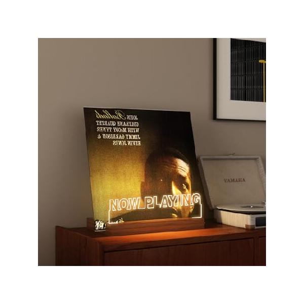 【並行輸入品】 Light up Now Playing ビニールレコードスタンド Now Spinning レコードプレーヤースタンド 木製アクリルホルダー