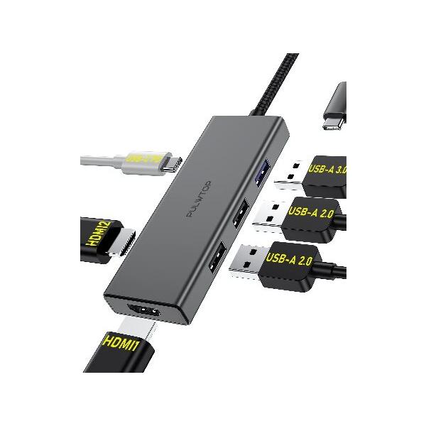 【並行輸入品】 USB C Docking Station to Dual HDMI Adapter, 6 in 1 USB C Hub Dual HDMI Monitors for Windows, USB C Adapter with Dual HDMI, 3 USB Port,