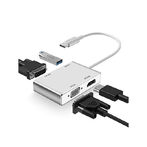 【並行輸入品】 USB C to HDMI DVI VGA Adapter, Weton 4 in 1 USB-C hub to 4K HDMI, VGA, DVI Video Adapter, Male to Female Multi-Display Video Converter