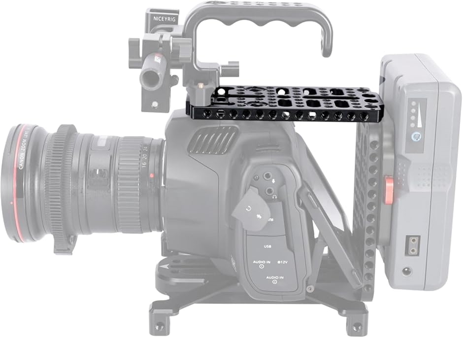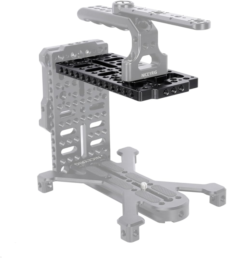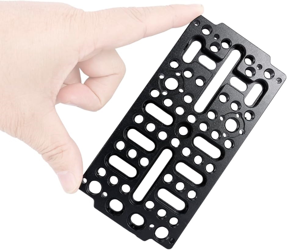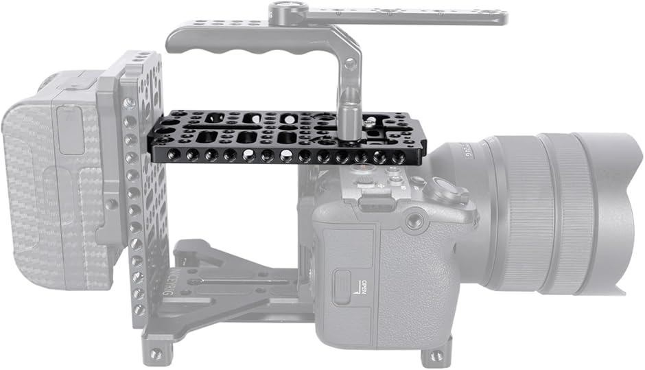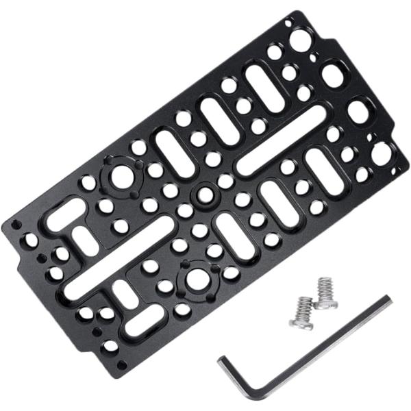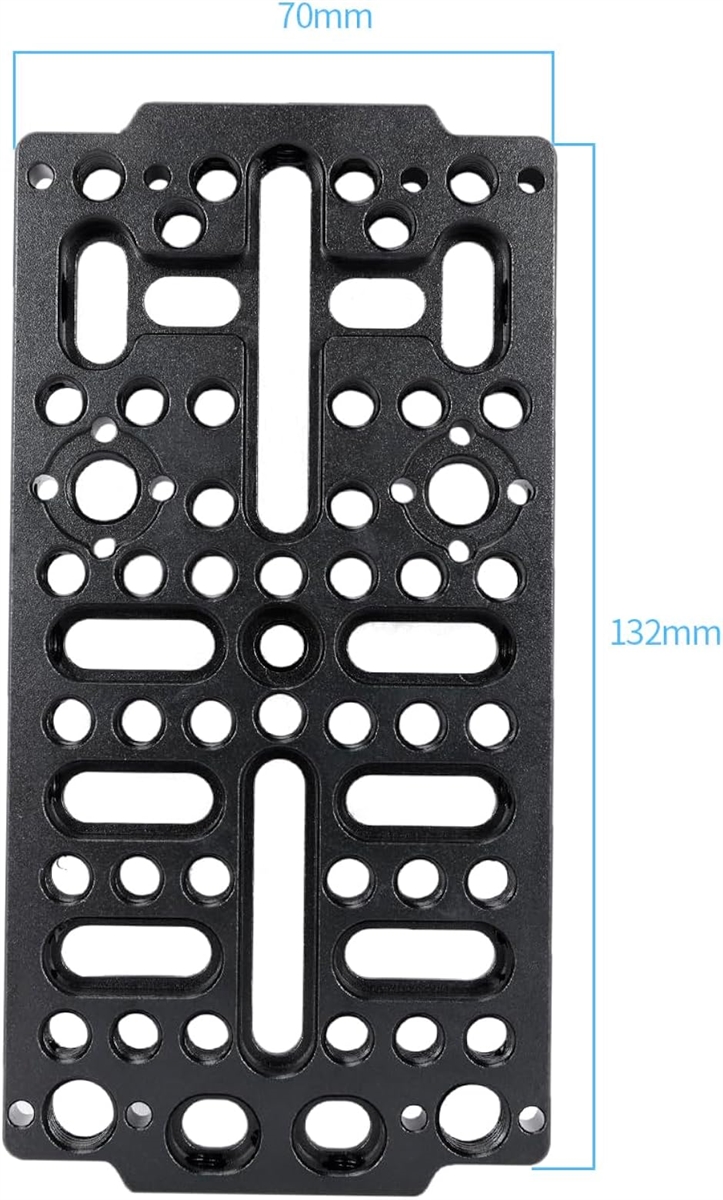 「拡張性が大きい」本チーズプレートは多用途クイックリリースプレートとし、複数の1/4“-20と3/8”-16ネジ穴付き、マジックアーム、ロッド、バッテリ―等カメラアクセサリーが取付けられる。
