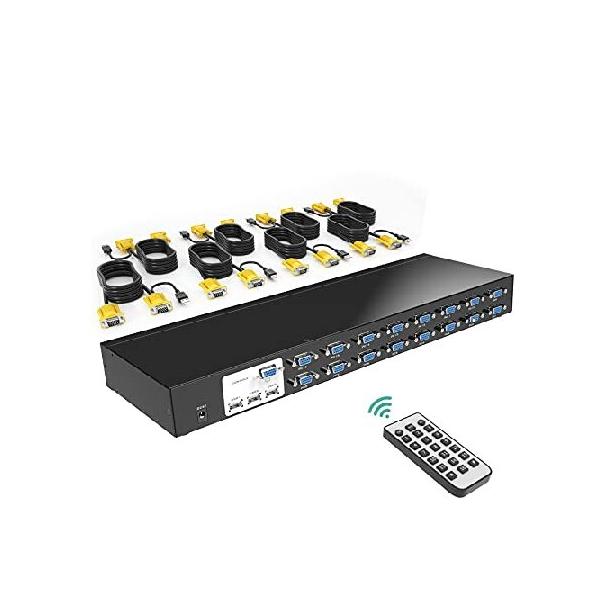 【平行輸入品】KVM Switch 16 Port Rackmount KVM Switch VGA, MT-VIKI 16x1 USB VGA KVM Console + Cables & Ears 1U Rack