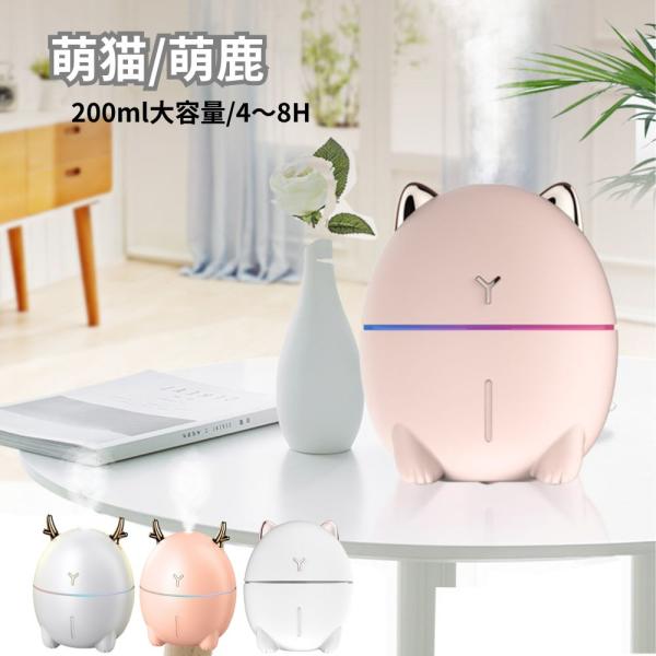 かわいい 加湿器 小型加湿器 卓上 スチーム 加湿器 萌猫 萌鹿 ベッドサイド ライト パソコン USB 猫グッズ リラックスタイム 乾燥対策
