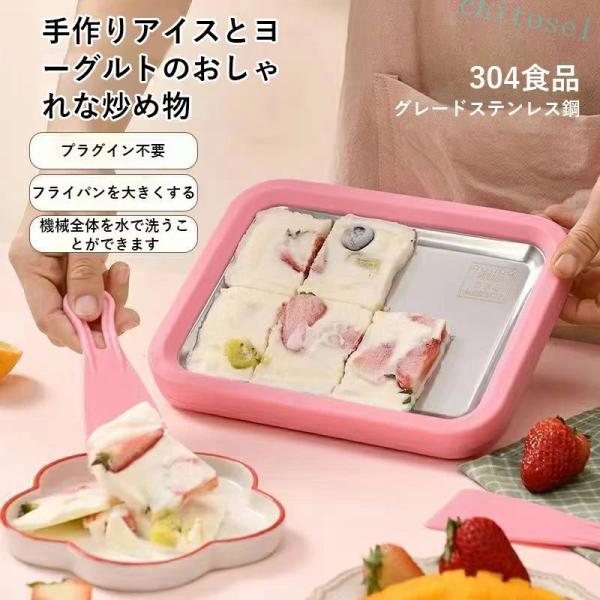 アイスクリームメーカー ヘラ2本付 電気不要 冷凍 手動かき氷器 多用途ゾンチースリップ底製造機 お手入れ簡単 ポータブル 全3色シャーベットメーカー