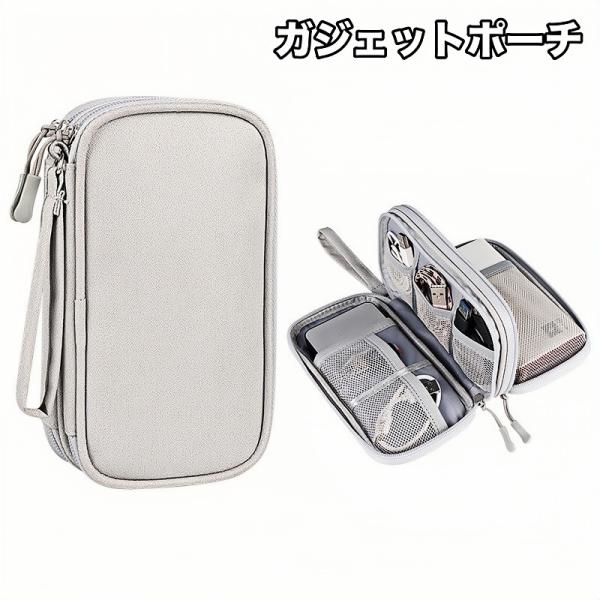 ガジェットポーチ ガジェットケース 収納ポーチ 小物入れ ケーブル イヤホン 充電器 スマホ PC周辺小物 多収納 ダブルファスナー 無地 シンプル