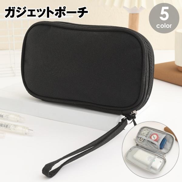 ガジェットポーチ ガジェットケース 収納ポーチ 小物入れ ストラップ付き ファスナー 長方形 オックスフォード スマホ入れ コード 充電ケーブル イヤ