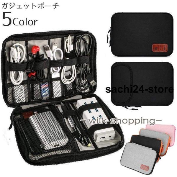 ガジェットポーチ 薄型 収納ケース トラベルポーチ バッグインバッグ 持ち運び ポータブル 旅行 ケーブル コード スマホ タブレット イヤホン 小物