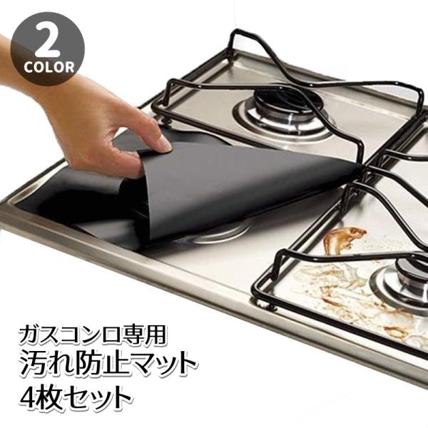 ガスコンロ用汚れ防止マット 4枚セット 焼け焦げ防止 ガスコンロシート ガスコンロカバー 正方形 27cm 丸洗い シンプル お手入れ簡単 キッチン用