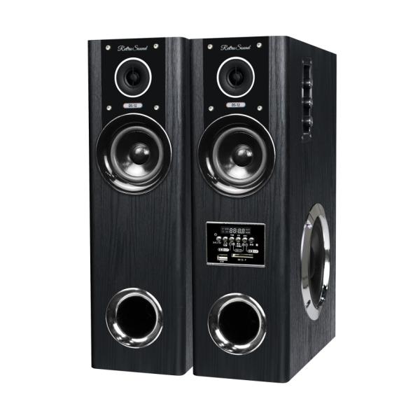 - 我が家に映画館級の大迫力サウンド!! 最大80W出力を誇るアンプ内蔵タワースピーカー 「ダイナミックサウンドスピーカー」です。 ◎アンプ内蔵なので、テレビやDVD/ブルーレイディスク レコーダー等の映像機器、CDプレーヤー等のオーディオ機器 スマートフォンやゲーム機まで様々な機器を接続するだけで 映画館級の大迫力サウンドをお楽しみいただけます。 ◎本体にはメディアプレーヤーを内蔵。 お手持ちのSDカード/USBメモリに保存した MP3音楽ファイルを直接差し込んで再生する事が出来ます。 ◎様々なAV機器を接続してお楽しみいただけます。 ◎商品仕様 ●サイズ(約):W12 x D25 x H46 cm ●重量(約):[メイン]3.4 kg / [サテライト]3.0 kg ●電源:AC 100V 50/60Hz ●消費電力:動作時:42W、スタンバイ時:0.3W ●入出力端子: [メインスピーカー]音声入力1=3.5mmステレオミニ 音声入力2=RCAピン (左/右)、SDカードスロット USB-A、スピーカー接続=RCAピン [サテライトスピーカー]スピーカー接続=RCAピン ●スピーカー: インピーダンス:4Ω 周波数特性:35Hz〜20kHz S/N比:>65db 歪率:0.5%以下 出力(最大):ツイーター=5W×2、スコーカー=15W×2 ウーファー=20W×2 ユニットサイズ:ツイーター 2インチ×2 スコーカー=3インチ×2、ウーファー=4インチ×2 ●色:黒木目調 ●電源コード長(約):1.5 m ●メディアプレーヤー: [SDカード] 対応メディア:SD/SDHC ディスク容量:2GB〜32GB 対応ファイル形式:MP3 ビットレート:128〜320kbps [USBメモリ] 対応メディア:USB2.0/3.0 ディスク容量:2GB〜32GB 対応ファイル形式:MP3 ビットレート:128〜320kbps ●付属品: [オーディオケーブル1] プラグ:3.5mmステレオミニ、長さ(約):3m [オーディオケーブル2] プラグ:RCAピン-3.5mmステレオミニ、長さ(約):3m [スピーカーケーブル]プラグ:RCAピン、長さ(約):3m [リモートコントローラー]電源:3V ボタン電池CR2025 サイズ(約):幅39×高85×厚7.0mm、質量(約):14g 取扱説明書 ※モニターの発色の具合によって 実際のものと色が異なる場合がございます。