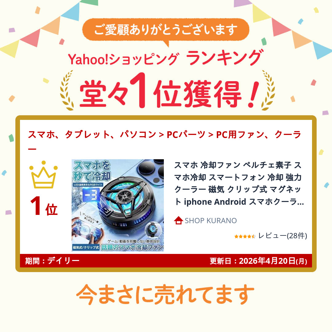 - 【スマホの冷却&5秒急速冷却】この製品は直接スマホを冷やし、CPUの消費を減らすことができます。USB 電源 (5V 2A を推奨) を接続すると、デバイスのシェルは 3 秒以内に明らかに冷却され、冷却方法はペルチェ式を採用しており、電源を入れてわずか5秒ほどで冷たく感じます。本製品を使用している場合、スマホの温度上昇をしっかり抑えて、熱から大切なバッテリーを守り。 非常に暑い夏の日にビデオ視聴、ゲーム、ライブブロードキャスト、リモートオフィスなどで携帯電話を長時間使用することによって引き起こされる黒い画面、スプラッシュスクリーン、CPU電力消費の問題、およびその他の問題を解決できます。【クリップ式&磁力吸着式】本製品には、マグネット磁石が内蔵されており、iPhone 12以降のApple端末や一部のAndroid端末など、Mag-Safe機能を搭載したApple端末に適しています。 4.7〜6.7インチのデバイスに適した2つのクリップが装備されており、ほとんどのAppleおよびAndroidデバイスに適しています。(注:背面が湾曲しているデバイスは、クリップでの固定や磁気吸着が難しいため、ヒートシンクを使用できません) (提案: 1. 磁気吸引機能のないデバイスはクリップを使用してラジエーターを固定することをお勧めします。磁気吸引機能のあるデバイスは直接吸着して使用できます。 2. 磁性シートや機器に直接付着した3M粘着剤は、加熱・冷却を繰り返すと粘着力が著しく低下します)【小型&静音設計】小型で軽量、長時間ゲームを楽しんでも手が疲れにくいです。ゲームを邪魔しないように、静音設計でノイズの発生を抑えられ、ほとんど回転する音はなく、ドラマやゲームの音に影響を与えることも心配ありません。周りの人に迷惑をかける心配はありません。ゲームや視聴を楽しむことができます。【LED温度表示・RGBライト効果】従来品に比べて、本冷却ファンはLED温度表示が付き、スマホの温度が一目瞭然になります!動作中にRGBライトを点灯しているので、ゲームの没入感を高めます。【USB給電式、プラグアンドプレイ】本製品はスマートフォンで最も一般的に使用されているType-Cインターフェイス、プラグアンドプレイを採用しており、バッテリーは内蔵されていないため、クーラーの重量が大幅に軽減され、長く使っても疲れません。面積の大きい半導体冷却シートがぴったりフィットし、効率よく熱を伝導し、5秒で冷却します。Type-C対応の USBケーブルが付属しています. 【注意事項】 (1) 5V2A に達する電源アダプターを使用することをお勧めします. この基準より低い場合、製品が正常に動作しないか、放熱効果が期待される効果を満たせません。(2)使用する前に10秒間電源を入れてください。 使用中にクーラーの表面に結露が発生しても、これは正常な現象であり、心配する必要はありません。★★送料無料★★