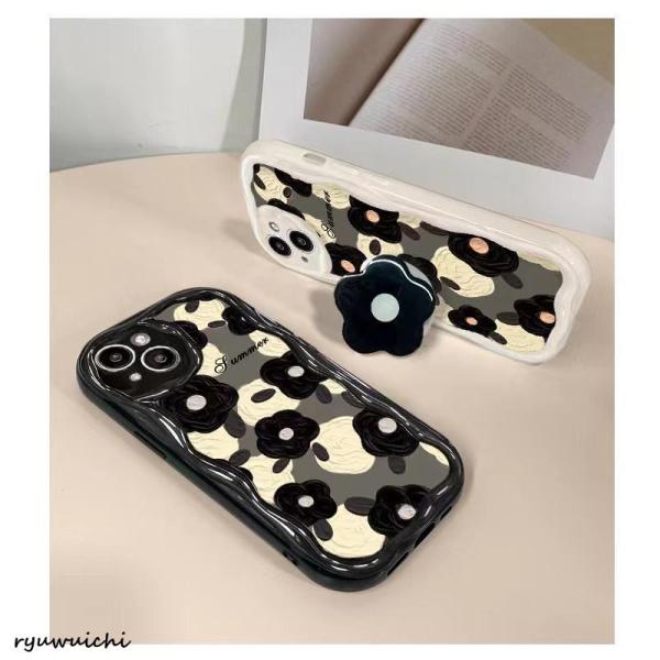 スマホケース iphone14 ケース 韓国 iphone13 ケース iphone12 ケース 携帯ケース iphone11 ケース TPU グリップ grip 花 フラワー モノトーン