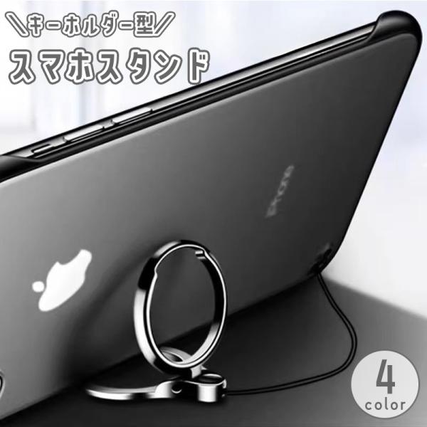 スマホスタンド キーホルダー スマホリング リング型 ストラップ アクセサリー 折りたたみ 卓上 鍵 カギ 携帯 紛失防止 落下防止 メタリック 金属