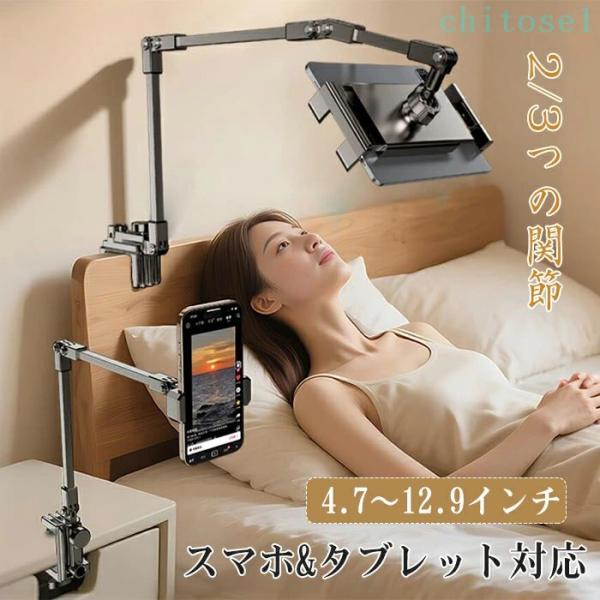 スマホスタンド タブレットアーム iPadスタンド アーム 横 縱き 寝ながらゾンチー卓上 ベッド用 スマホ ホルダー 2 3段式 安定で揺れない 360回転 折りたたみ式