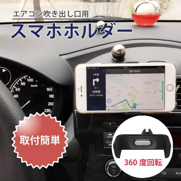 スマホホルダー 車 エアコン 車載 クリップ カー用品 360度回転 ブラック 送料無料